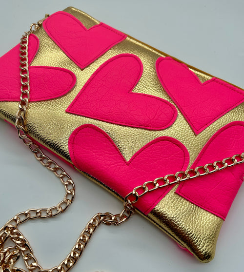 Gold and neon pink heart bag